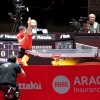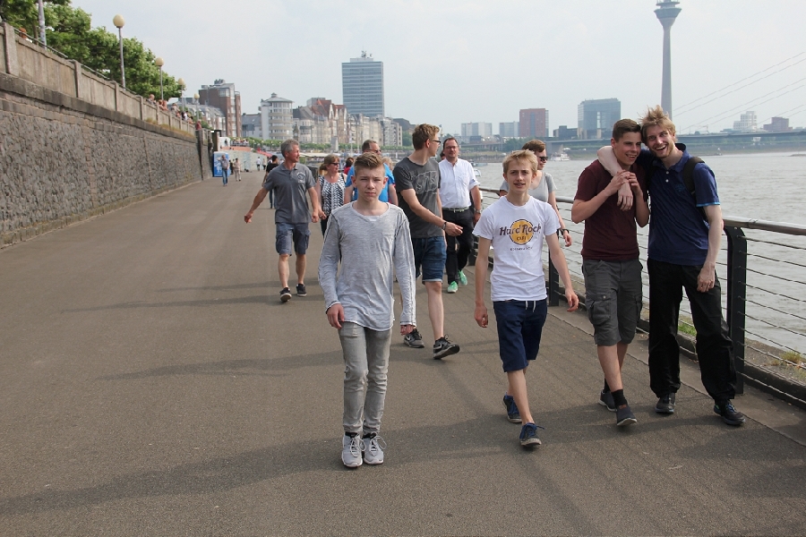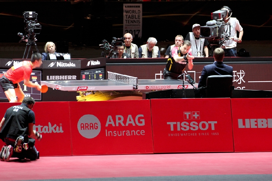 Was macht man wenn die WM vor der Haustür ausgetragen wird? Genau, man fährt hin und schaut sich die Stars mal Live und in Farbe an. Gesagt, getan, so fuhren 13 bunt zusammengewürfelte TTC Mitglieder zum Austragungsort. Quartier genommen in der modernen Jugendherberge direkt am Rhein galt es zunächst einmal die Orientierung finden. Das geht natürlich am Besten vom Schiff aus. Bei herrlichem Sonnenschein ging es zu Fuß zum Anleger und dann mit dem Panorama Schiff ab in den Medienhafen. Nach einer kurzen Nacht machten wir uns per U-Bahn auf zur Esprit Arena. In Messehalle 6 ging es um das Achtel- und Viertelfinale im Herren Einzel. Alle waren sehr gespannt, wie sich unsere deutschen TT-Cracks Boll und Ovtcharov gegen die Übermacht aus Asien wohl schlagen würden. Trotz großartiger Unterstützung des frenetischen Publikums reichte es am Ende knapp nicht für Dima und Timo, zufrieden waren aber alle bei objektiver Betrachtung. Schließlich standen auf der anderen Tischseite der japanische elfte der Weltrangliste sowie die unangefochtene Nummer eins Ma Long, der spätere Weltmeister wie wir heute wissen. Als Sahnehäubchen konnten wir noch das hochklassige Finale der Damen und das Doppelendspiel der Männer bestaunen, wenig überraschend eine Sache von Asiaten unter sich. Und am Ende standen die Chinesen wieder ganz oben auf dem Podest. Die Stimmung war super und das Rahmenprogramm konnte sich auch sehen lassen. Ein toller Tag fand beim lockeren Zusammensitzen und TT-Fachsimpeln einen gemütlichen Ausklang. Von den Eindrücken werden die Teilnehmer noch lange zehren und vielleicht hat der eine oder andere ganz genau zugesehen und etwas bei den Weltstars des Tischtennis für sich abgeschaut.