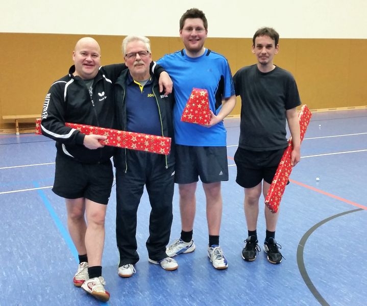Am ersten Trainingsabend nach Nikolaus trafen sich die Spieler des Tischtennisvereins zum traditionellen Freundschaftsturnier. Statt dem 2er-System der vergangenen Jahre erwartete sie dieses Mal allerdings eine Überraschung. Nach der Begrüßung durch Seniorensportwart Klaus Kuhn erklärte der Vorsitzende Dirk Rahmeier den diesjährigen Austragungsmodus. Im sogenannten „Schweizer System“ treffen in einer vorher festgelegten Anzahl an Runden jeweils die Gegner aufeinander, welche in Stärke und Ergebnis am dichtesten beieinander liegen. Bei dieser Variante des Prinzips „Jeder-gegen-Jeden“ kristallisiert sich mit jeder weiteren Runde eine genauere Rangliste der Teilnehmer heraus. Jeder Spieler kann nur einmal auf den gleichen Gegner treffen, lange Wartezeiten entfallen dank des Rundenprinzips.