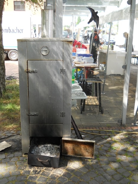 Einige Vereinsmitglieder begeistern sich neben dem Tischtennis auch für's Angeln und Räuchern. So konnten die Forellen direkt am Stand frisch geräuchert werden.