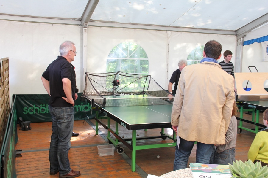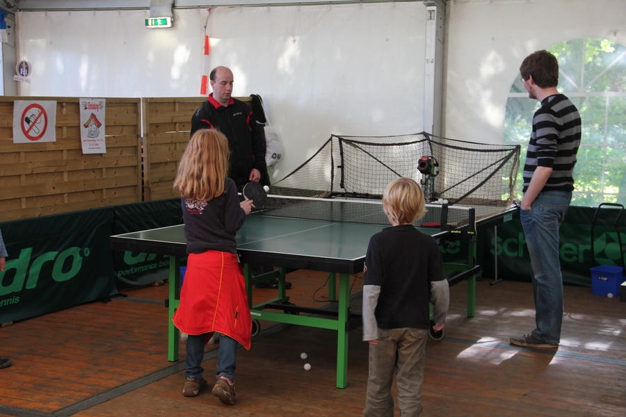 ausgiebig das Spielen mit dem kleinen weißen Ball üben. Großer Beliebtheit erfreute sich das Spiel gegen den Tischtennisroboter, da hier, je nach Spielstärke des Spielers, die Geschwindigkeit, der Spin und die Seite eingestellt werden konnten.
