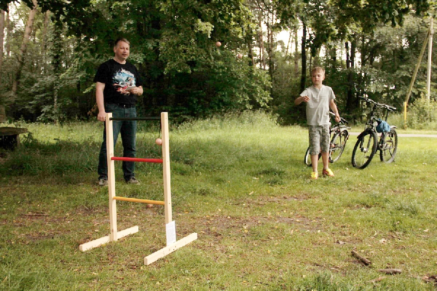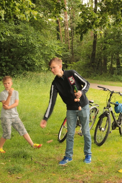 Auch in diesem Jahr stand das Sommerfest, als einer der gesellschaftlichen Höhepunkte, auf dem Vereinskalender. Die 46 teilnehmenden Mitglieder und Familienangehörige durften sich, wie im vergangen Jahr, auf die Gastfreundschaft der Familie Beckmann am Schulenburger Weg freuen. Jedoch war den TT-Freunden Petrus am 28. Juni nicht gewogen und man musste mit widrigen Wettbedingungen vorlieb nehmen. Trotzdem war das Fest ein voller Erfolg. Nach dem Treffen an der Sporthalle ging es in kleineren Gruppen auf eine moderne Schnitzeljagd mit dem Fahrrad. Die Teilnehmer mussten, ausgestattet mit GPS-Empfängern und Kartenmaterial, Versorgungspunkte ansteuern und diverse Spiele bewältigen. Neben Leitergolf und Ringe Werfen stand Basketball auf dem Programm. Nach absolvierter Tour wurden die Teilnehmer am Festzelt mit Erfrischungsgetränken und einem Grillbuffet für die nachmittäglichen Anstrengungen belohnt. Dem abendlichen Regen trotzend fand das Fest für alle Mitstreiter einen gemütlichen Ausklang.