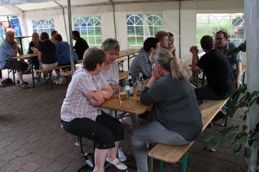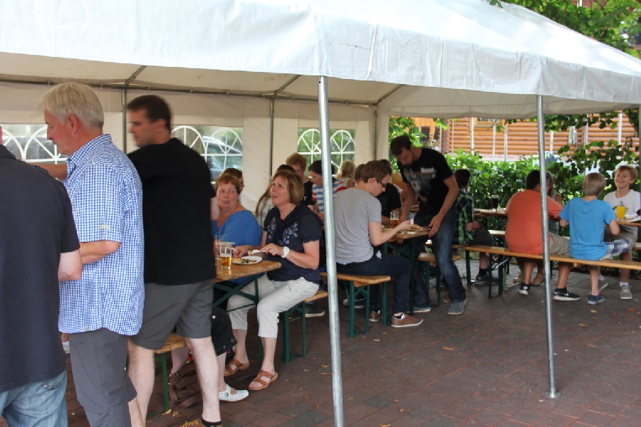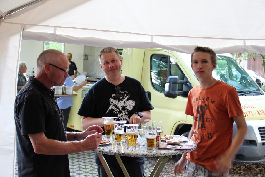 Nachdem die Bollerwagentour, die bei sommerlichen Temperaturen den ein oder anderen Hobbysportler durchaus ins Schwitzen brachte, auf den Hof Kattmann führte, ging es in den gemütlichen Teil des Festes über. Hierzu gab es selbstverständlich erneut kühle Getränke und frisch gelieferte Pizza direkt aus dem Pizzawagen, was besonders die jüngeren Vereinsmitglieder freute. Nach der körperlichen Stärkung konnten sich die Anwesenden dann noch an verschiedenen Geschicklichkeitsspielen, wie etwa Ringewerfen, versuchen oder auch den Tag gemütlich ausklingen lassen.