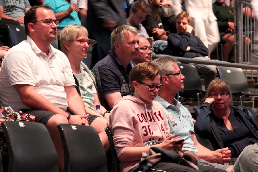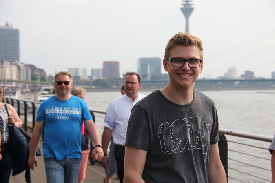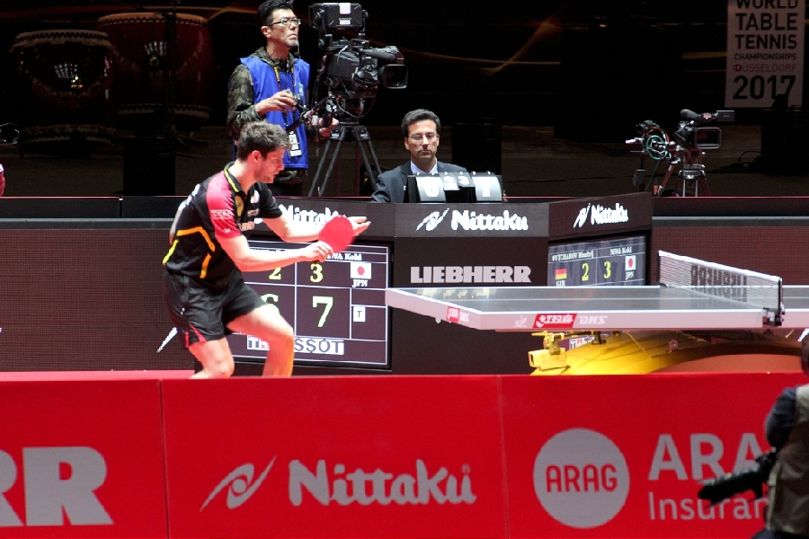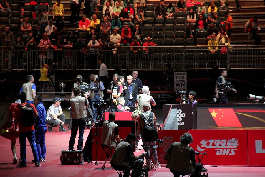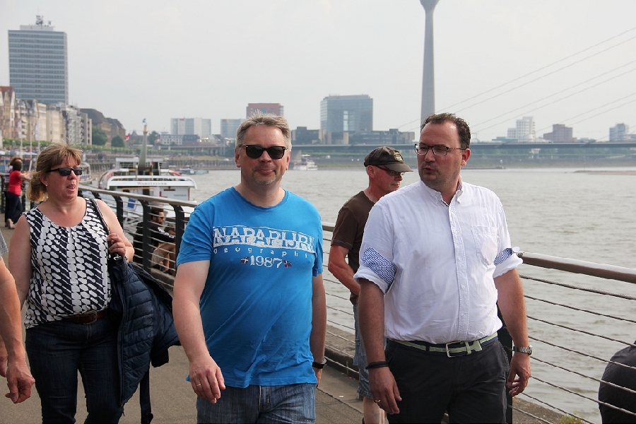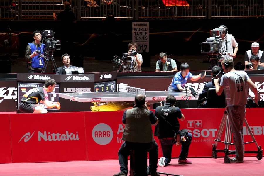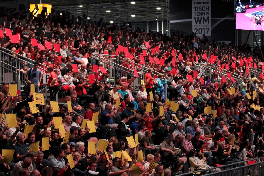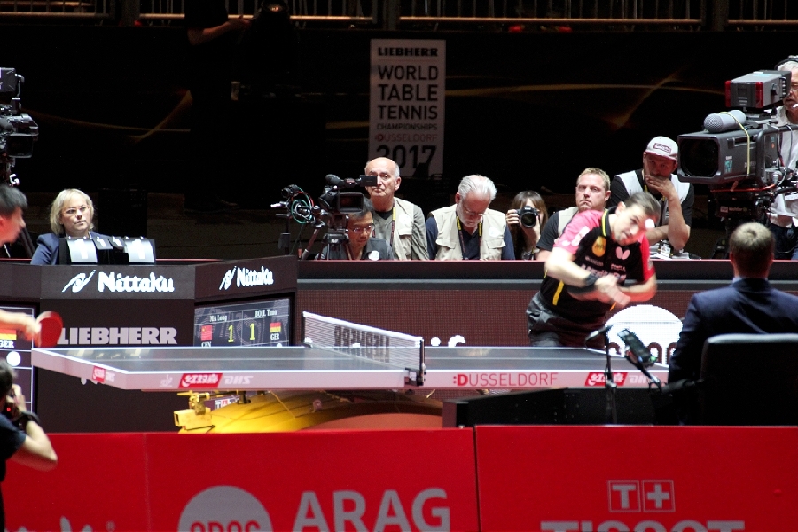 Was macht man wenn die WM vor der Haustür ausgetragen wird? Genau, man fährt hin und schaut sich die Stars mal Live und in Farbe an. Gesagt, getan, so fuhren 13 bunt zusammengewürfelte TTC Mitglieder zum Austragungsort. Quartier genommen in der modernen Jugendherberge direkt am Rhein galt es zunächst einmal die Orientierung finden. Das geht natürlich am Besten vom Schiff aus. Bei herrlichem Sonnenschein ging es zu Fuß zum Anleger und dann mit dem Panorama Schiff ab in den Medienhafen. Nach einer kurzen Nacht machten wir uns per U-Bahn auf zur Esprit Arena. In Messehalle 6 ging es um das Achtel- und Viertelfinale im Herren Einzel. Alle waren sehr gespannt, wie sich unsere deutschen TT-Cracks Boll und Ovtcharov gegen die Übermacht aus Asien wohl schlagen würden. Trotz großartiger Unterstützung des frenetischen Publikums reichte es am Ende knapp nicht für Dima und Timo, zufrieden waren aber alle bei objektiver Betrachtung. Schließlich standen auf der anderen Tischseite der japanische elfte der Weltrangliste sowie die unangefochtene Nummer eins Ma Long, der spätere Weltmeister wie wir heute wissen. Als Sahnehäubchen konnten wir noch das hochklassige Finale der Damen und das Doppelendspiel der Männer bestaunen, wenig überraschend eine Sache von Asiaten unter sich. Und am Ende standen die Chinesen wieder ganz oben auf dem Podest. Die Stimmung war super und das Rahmenprogramm konnte sich auch sehen lassen. Ein toller Tag fand beim lockeren Zusammensitzen und TT-Fachsimpeln einen gemütlichen Ausklang. Von den Eindrücken werden die Teilnehmer noch lange zehren und vielleicht hat der eine oder andere ganz genau zugesehen und etwas bei den Weltstars des Tischtennis für sich abgeschaut.