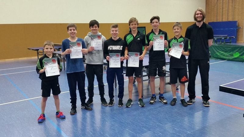 Bei den Schülern gipfelten viele enge Duelle schließlich in einem denkbar knappen Finale. In der Verlängerung des 5. Satz konnte sich Jan Waldhecker gegen Mika Mairose in einem spektakulären Spiel am Ende durchsetzen. Das Treppchen vervollständigte Arne Berlemann auf dem 3. Platz.