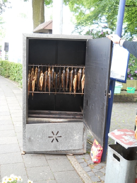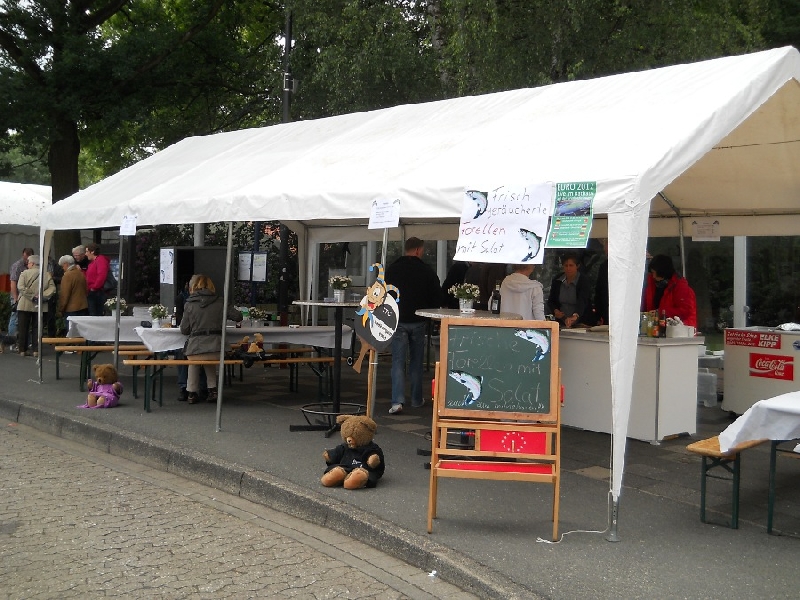 Einige Vereinsmitglieder begeistern sich neben dem Tischtennis auch für's Angeln und Räuchern. So konnten die Forellen direkt am Stand frisch geräuchert werden.