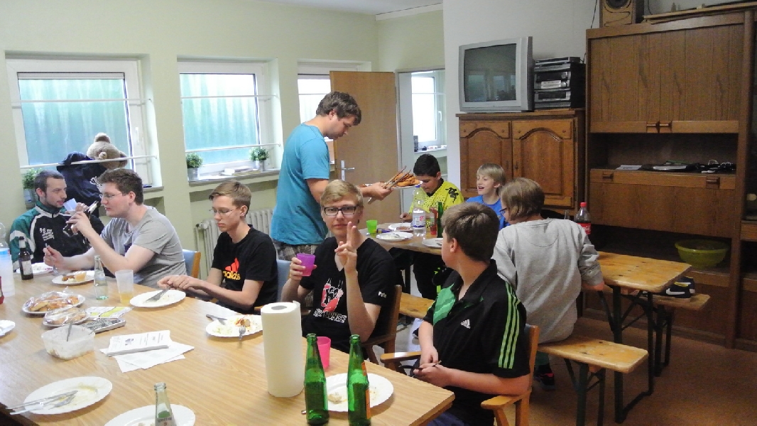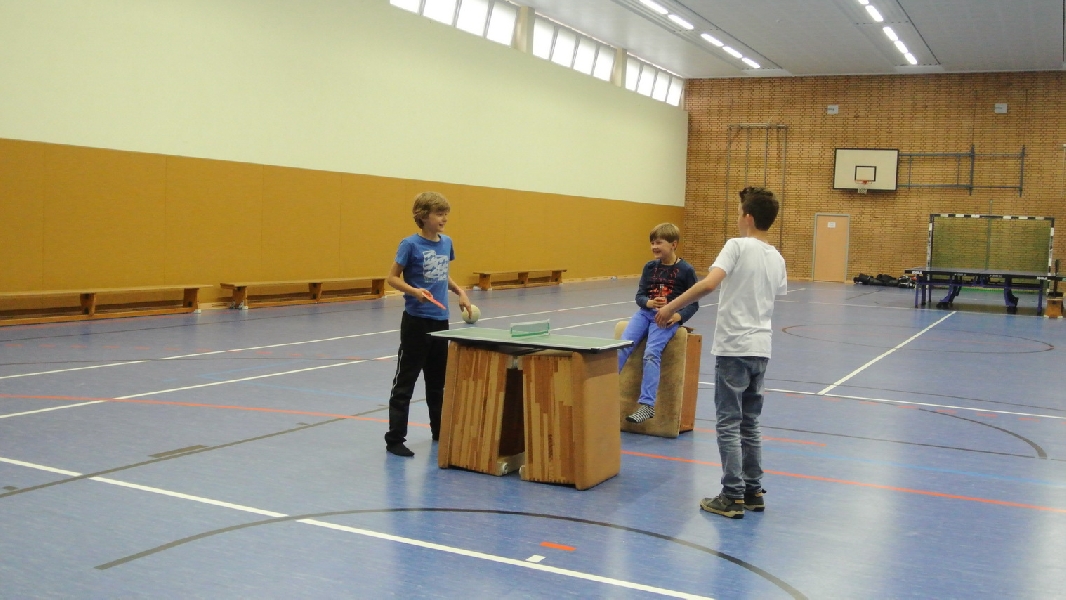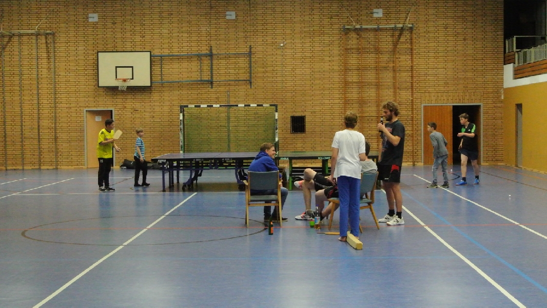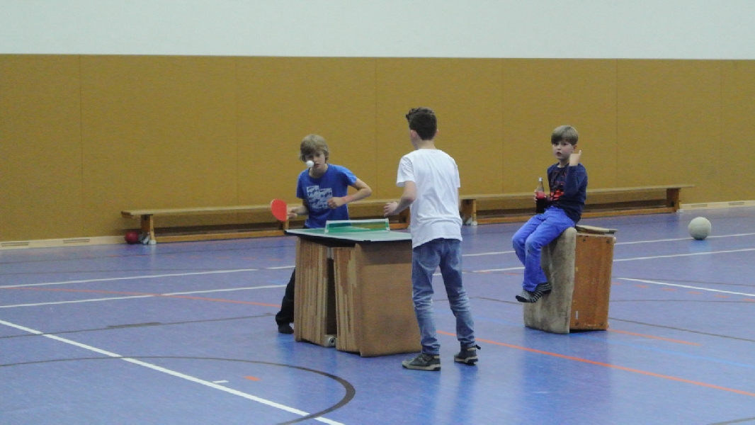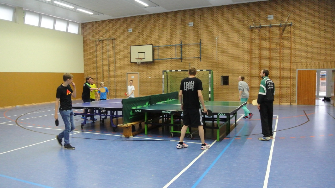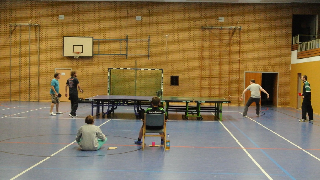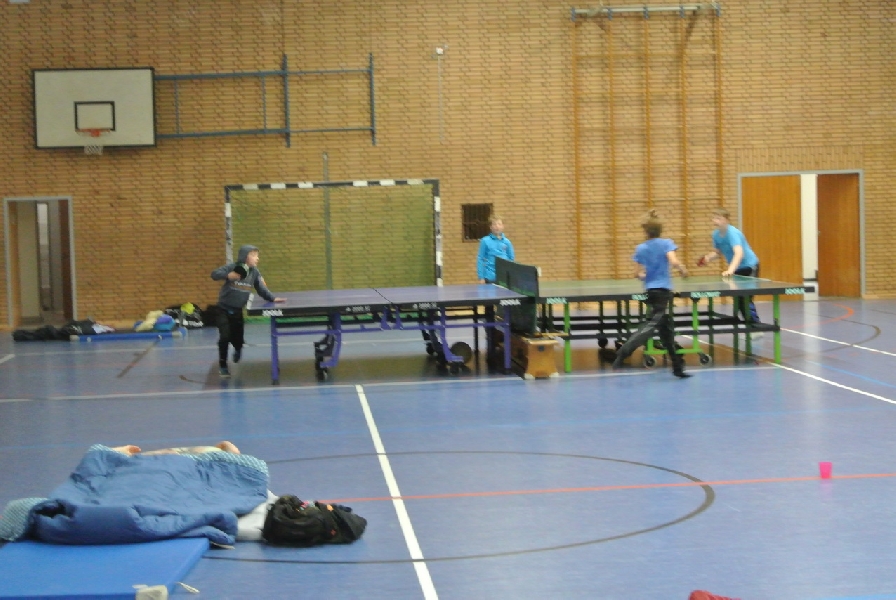 Nach diesem Ausflug in die fremde Sportart ging es wieder zurück nach Ladbergen, bei der eine Übernachtung in der Sporthalle I an der Jahnstraße im Mittelpunkt des weiteren Geschehens stand. Wo sonst die Meisterschaftsspiele und das Training die ganze Aufmerksamkeit des TTC Nachwuchses erhielten, standen neben einem gemütlichen Grillen jetzt unter anderem Fußball und WII spielen, DVD schauen und Rundlauf an der „großen Platte“ im Interesse der Akteure.