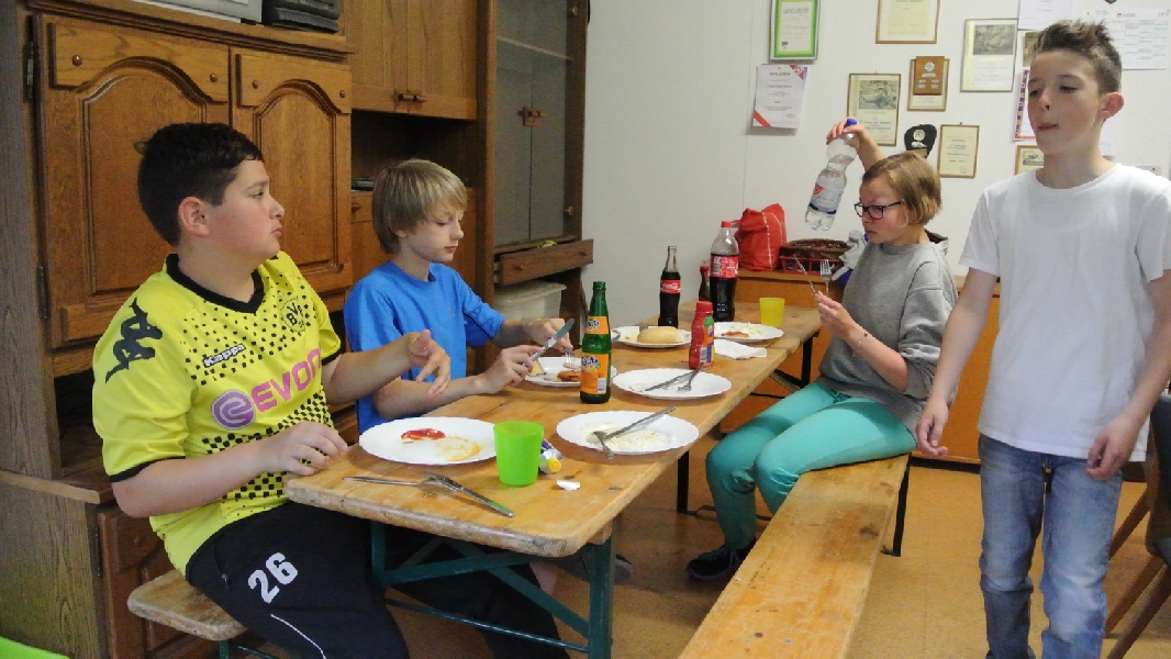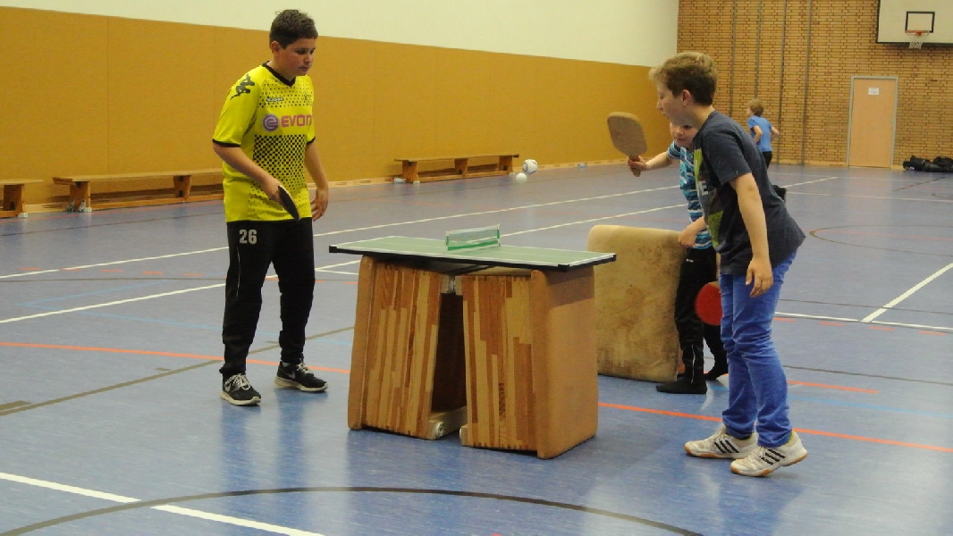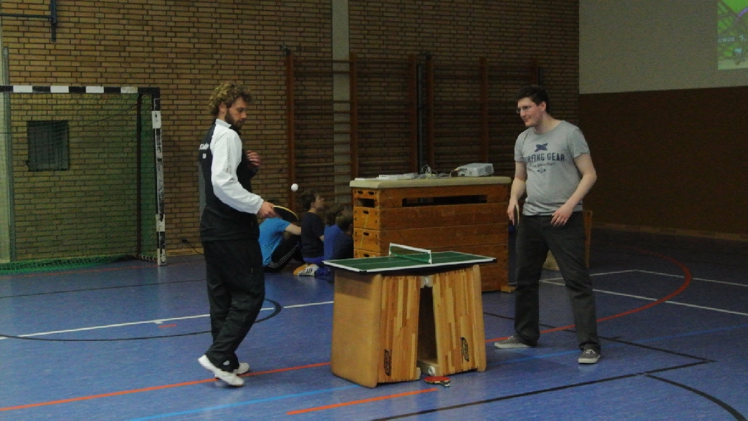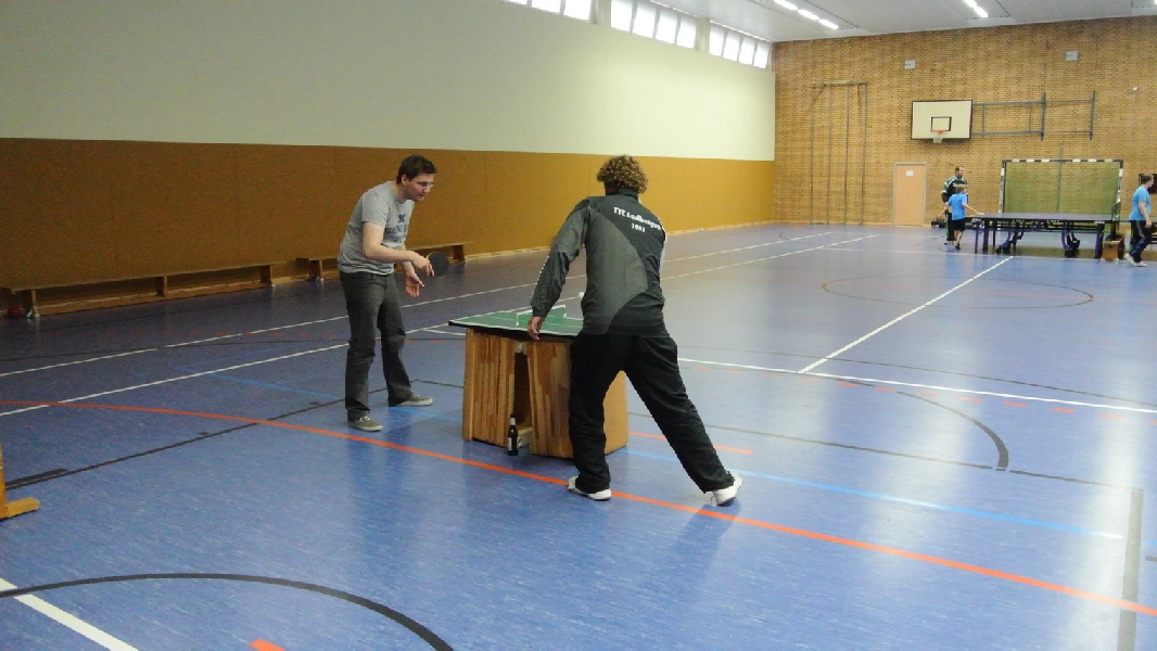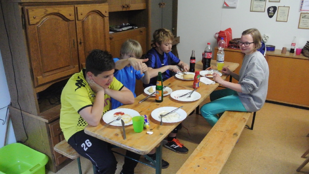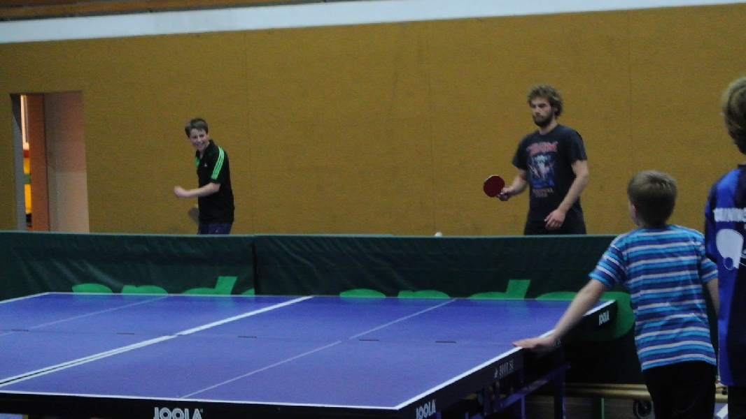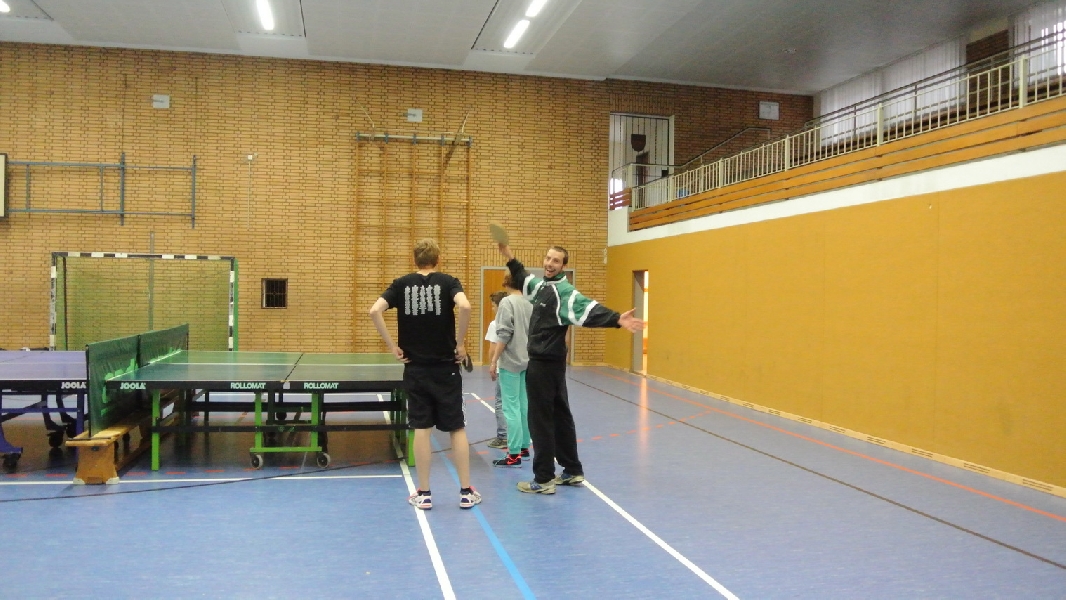 Nach diesem Ausflug in die fremde Sportart ging es wieder zurück nach Ladbergen, bei der eine Übernachtung in der Sporthalle I an der Jahnstraße im Mittelpunkt des weiteren Geschehens stand. Wo sonst die Meisterschaftsspiele und das Training die ganze Aufmerksamkeit des TTC Nachwuchses erhielten, standen neben einem gemütlichen Grillen jetzt unter anderem Fußball und WII spielen, DVD schauen und Rundlauf an der „großen Platte“ im Interesse der Akteure.