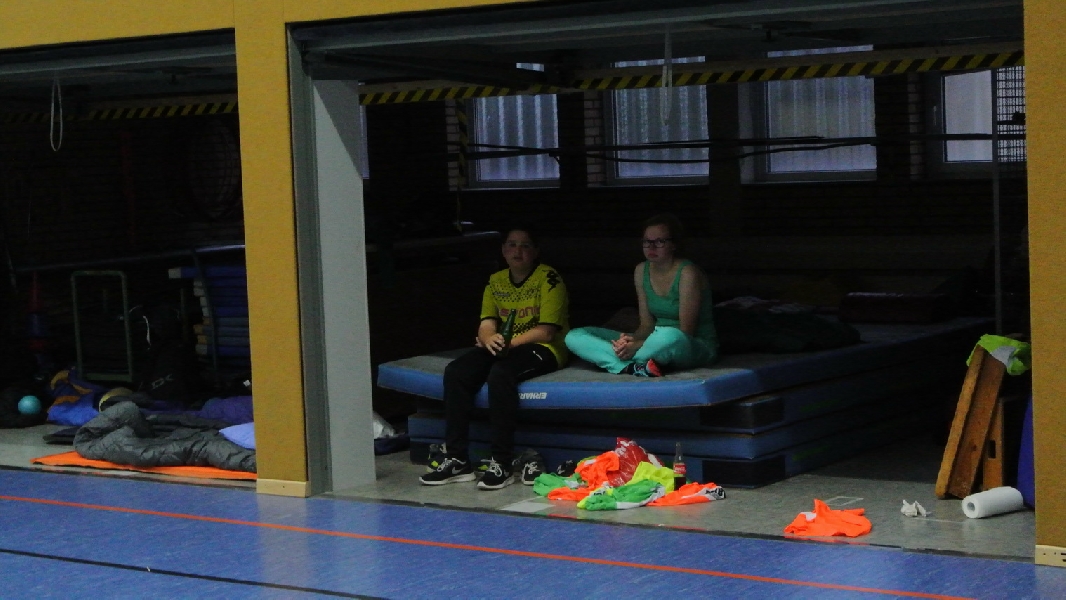 Bis alle ihre Nachtlager eingerichtet hatten und Ruhe in die Sporthalle eingekehrt war, war die Nacht schon weit fortgeschritten. Nach kurzem Schlaft und einem kräftigen Frühstück konnten alle Beteiligten müde aber zufrieden in die Obhut ihrer Familien zurückkehren.